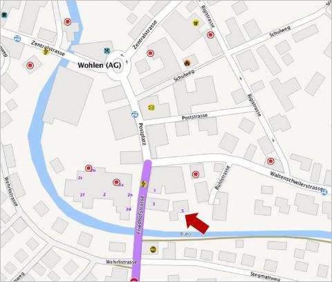 Falls Ihr Navigationsgerät die Hausnummer 5 nicht findet, geben Sie die Hausnummer 1 ein.Kunden-Parkplätze stehen gratis vor unserem Haus zur Verfügung.