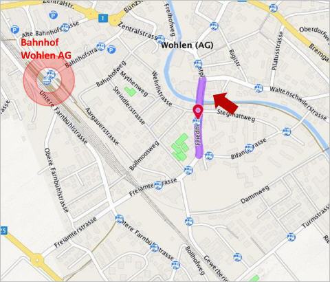 Sie erreichen uns ab Bahnhof Wohlen in 10 Minuten zu Fuss oder per Bus (Haltestelle Post 2).